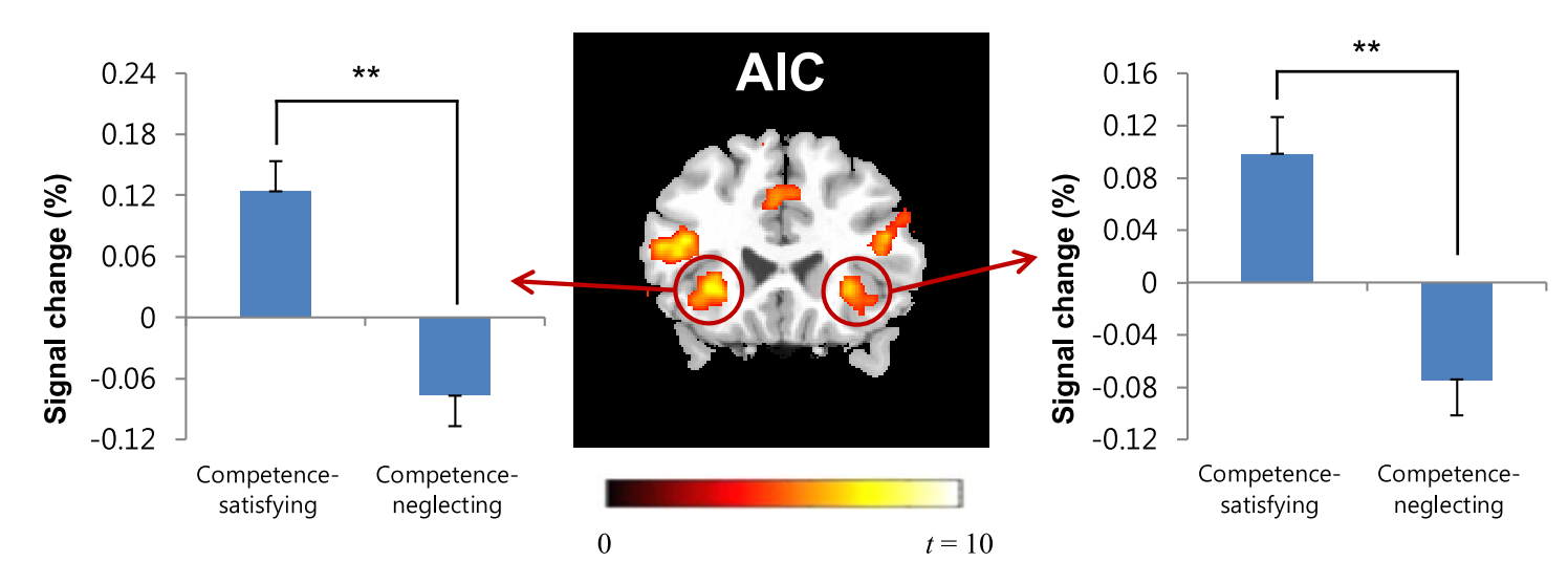 Vậy, làm đúng việc trong trường hợp này nghĩa là gì? Đó là chọn việc vừa sức – không quá khó hoặc quá dễ với bạn. Nghiên cứu cho thấy rằng khi người tham gia được giao các nhiệm vụ vừa sức và có lộ trình rõ ràng, thì thuỳ đảo (AIC) – khu vực não bộ liên quan đến động lực nội sinh – hoạt động tích cực hơn so với khi họ được giao các nhiệm vụ quá dễ hoặc quá khó (hình dưới).