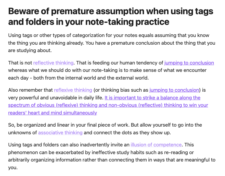 Dường như các nhà sáng lập và ban điều hành của Obsidian đã nhận ra rằng thế mạnh thực sự của ứng dụng ghi chép có tên gọi của một loại đá núi lửa này là một nơi giúp bạn mài giũa tư duy hơn là nơi để lưu trữ và quản trị kiến thức (mặc dù nó hoàn toàn có thể làm tốt cả hai vai trò này).