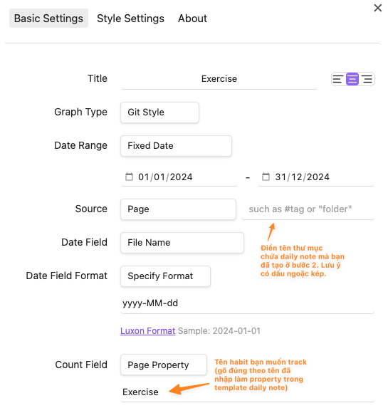Bước 2: Chuẩn bị dữ liệu với Daily note plugin